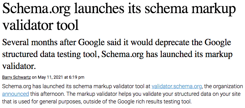 So first off, you put in here about an update. Schema.org has launched its own schema markup validator tool. What’s this?