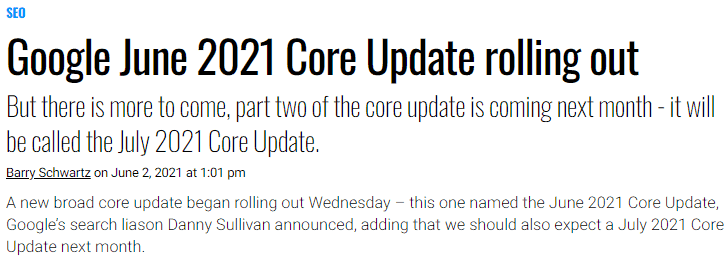 Ross: Definitely. It just takes experience and hammering through. I apologize to our listeners. It’s been a little bit of a break again here, but we do our best. We’ll continue to strive to have an episode every week. I think what’s delaying me is I keep wanting to have a guest on. I keep not following through on contacting people, and a couple of people I have, it’s just been too busy. It will happen, and we’ll get some more guests on as well. With that said, let’s jump into the Google Core Update, June 2021.