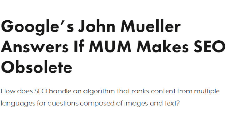 - Article: Google’s John Mueller Answers If MUM Makes SEO Obsolete